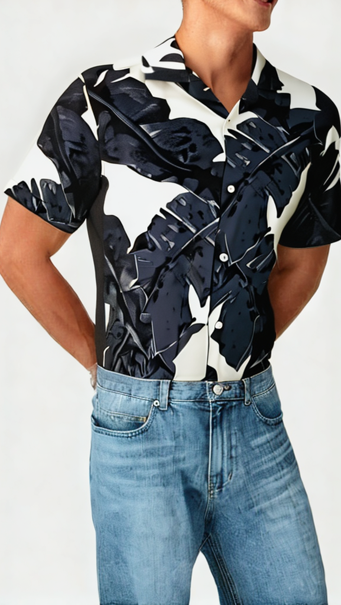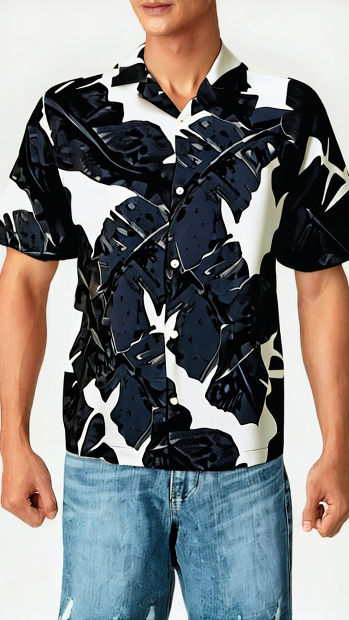 This new men’s fashion casual black and white irregular pattern short-sleeved shirt, with its unique black and white color matching and irregular pattern design, brings you the perfect combination of avant-garde and fashion. Made of high-quality fabrics, comfortable and breathable, it is very suitable for casual wear in spring and summer. Whether it is a street stroll or a casual party, this shirt can make you stand out and show a unique style.