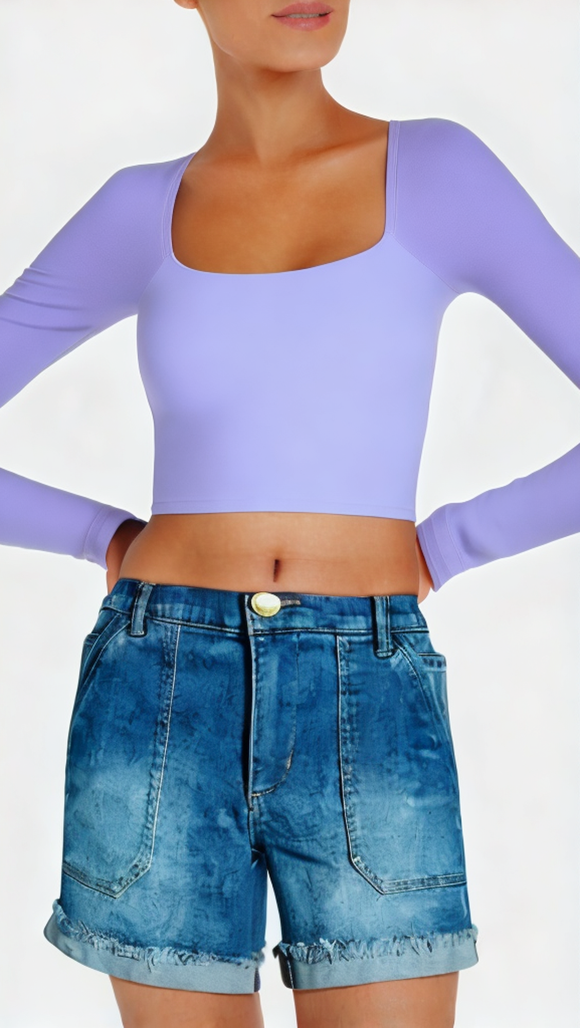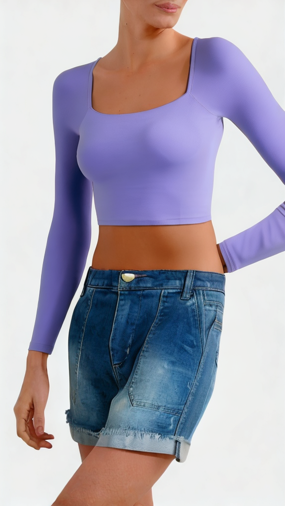 This short yoga top combines modern design with functionality, designed for outdoor activities and yoga practice. It features a stylish mesh back design that provides excellent breathability, while the long sleeves and thumbholes enhance comfort and functionality. Whether it’s outdoor sports or yoga practice, this top can meet your various needs.