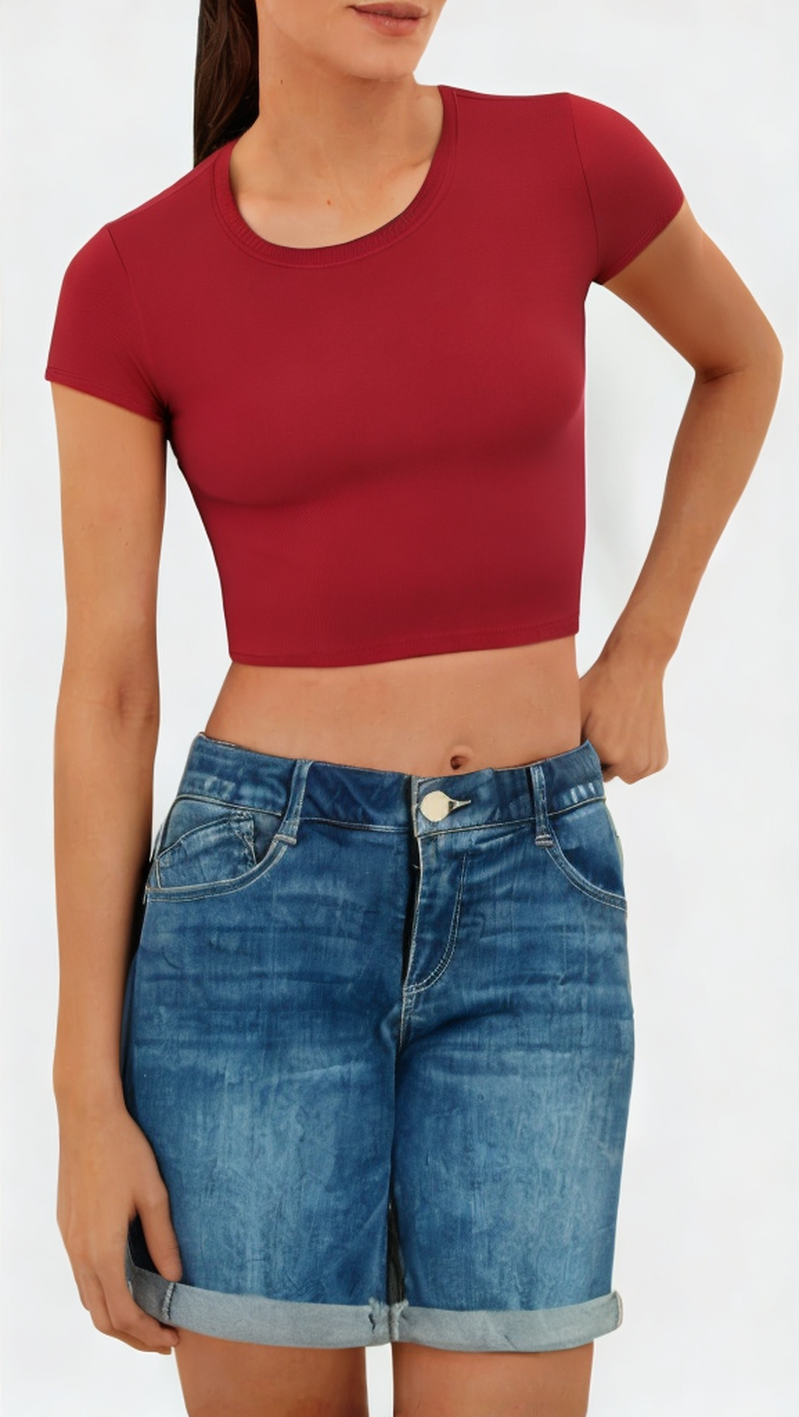 This casual fitness crop top, made of 85% nylon and 15% spandex stretch rib fabric, is designed for women who pursue comfort and performance. Its high elasticity and breathability make it an ideal choice for sports and leisure, while the short cut and fashionable design provide the wearer with a perfect wearing experience.