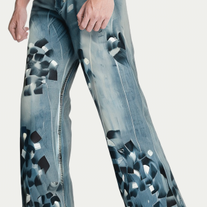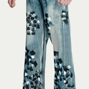 This printed flared casual jeans perfectly combines classic wide-leg design with modern fashion elements. The unique printed pattern and flared pants type inject rich layering and personalized style into the overall shape. Made of high-quality denim fabric, it is both comfortable and fashionable, and is an ideal choice for street fashion and casual style.