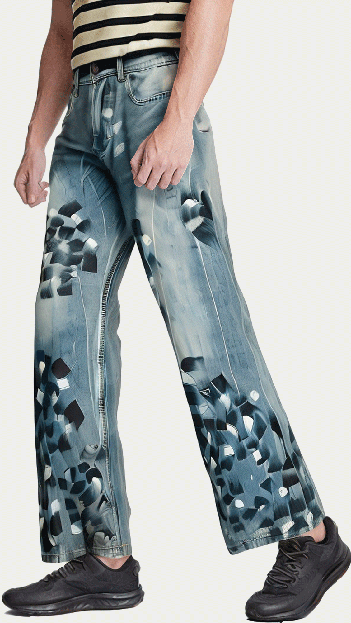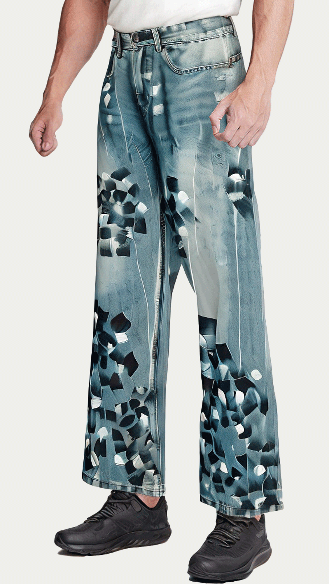 Printed design: The eye-catching printed pattern adds to the uniqueness of the pants, making it stand out in various occasions. The combination of printed style and denim fabric shows the perfect fusion of fashion and creativity.