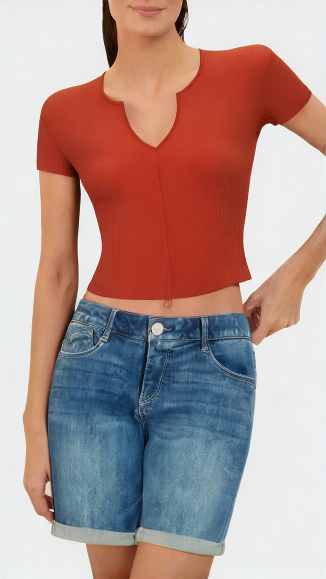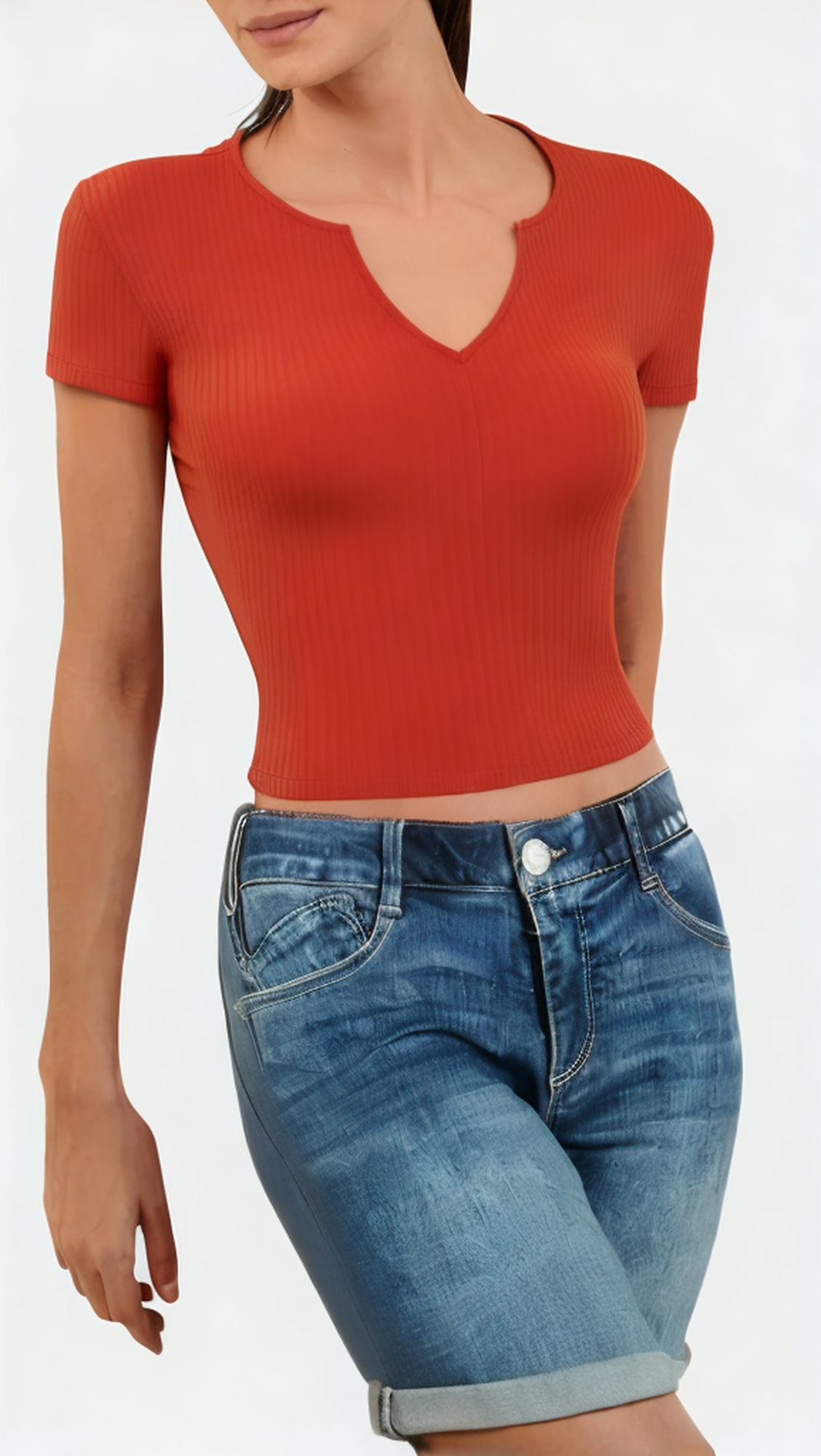 This sports top combines high stretch and smooth skin-friendly ribbed fabric, designed for yoga and fitness. The short tight cut not only enhances support, but also shows the natural curves of the body. Whether it is high-intensity training or a relaxing yoga practice, this T-shirt can provide you with ultimate comfort and fashion style.