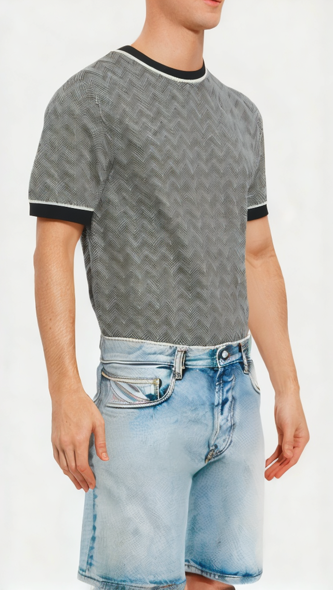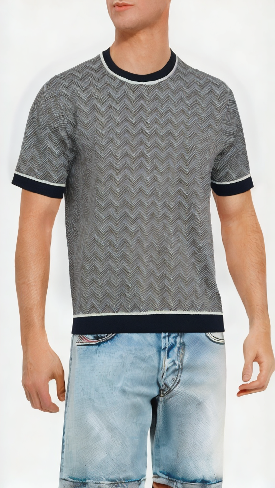 This high-quality men’s round-neck knitted wave short-sleeved sweater T-shirt combines the soft texture of a sweater with the lightness and comfort of a T-shirt, providing men with a high street fashion item that is both fashionable and comfortable. The unique wave texture design and round neck tailoring complement each other, showing a unique modern style, suitable for a variety of casual occasions.