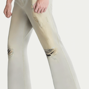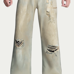 Exquisite Detail Craftsmanship: Meticulous stitching and sturdy metal hardware enhance the durability of the pants. The holes on the trouser legs complement the worn effect, showing a natural street style.