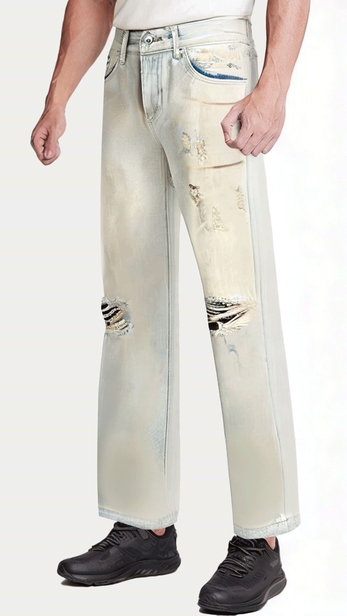 This high-quality wide-leg ripped washed jeans, with its unique design and high-quality fabrics, provides a great choice for street fashion lovers. Combining classic denim fabrics with modern street style, the pants are carefully washed to show a vintage and personalized ripped effect. Whether it is daily leisure or street trend activities, these jeans can add a unique style and comfort to your look.