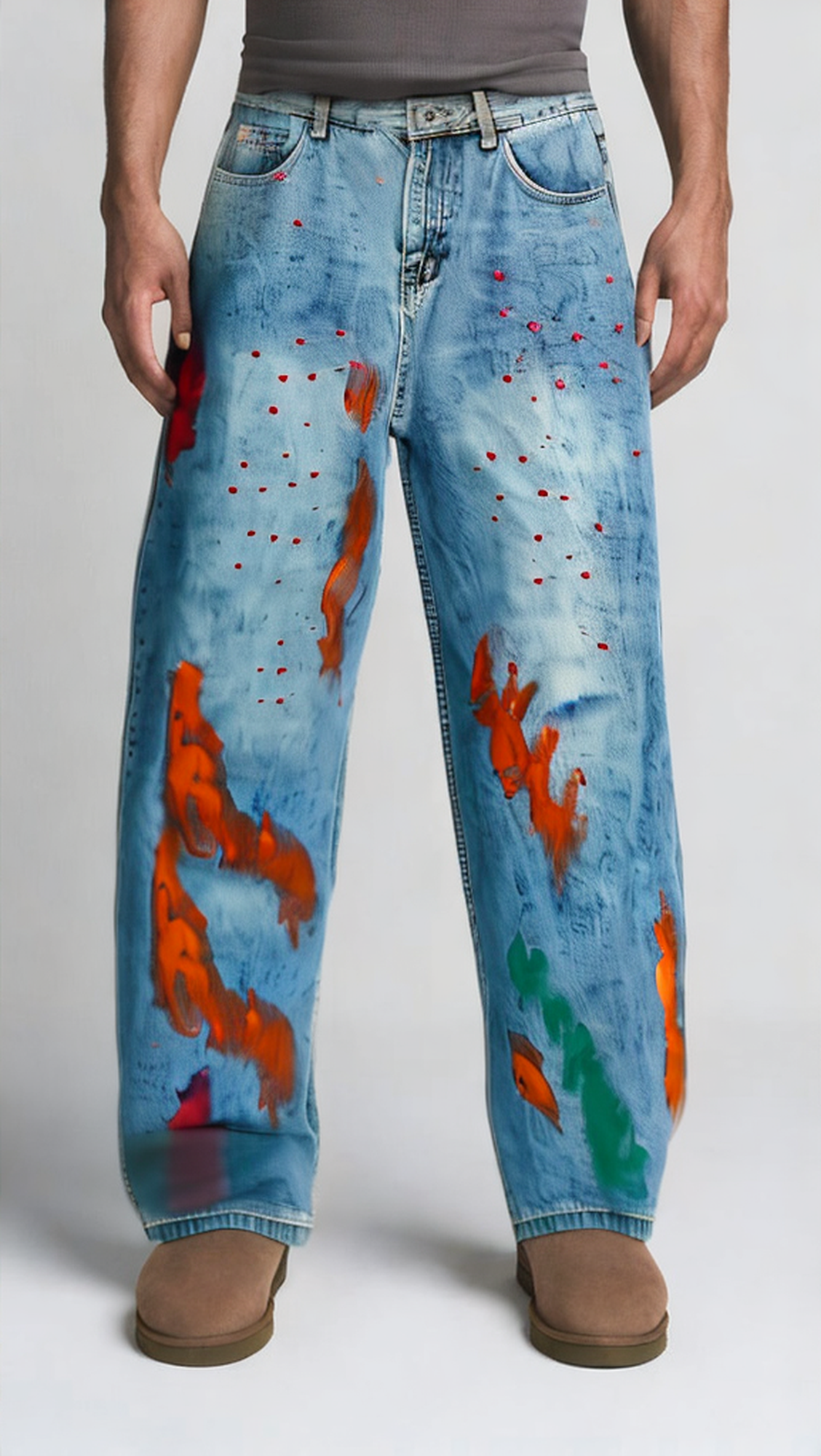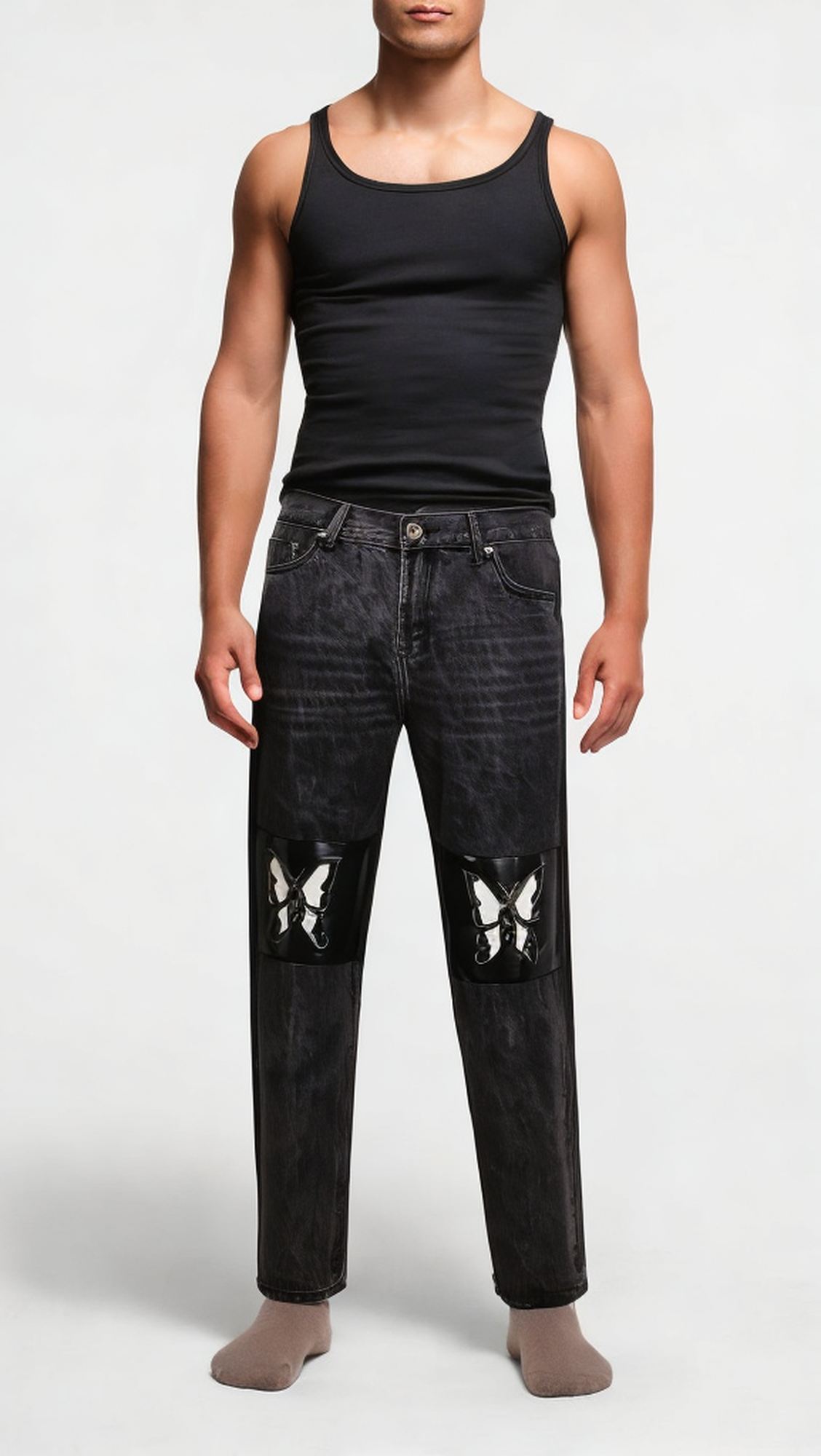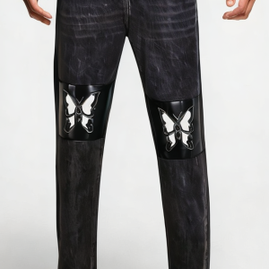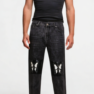 Butterfly pattern: As a decorative element, the butterfly pattern often symbolizes freedom, lightness and elegance, which can add a unique artistic atmosphere to this pair of jeans. It not only makes the pants look more personalized, but also attracts attention and shows the wearer’s fashion taste.