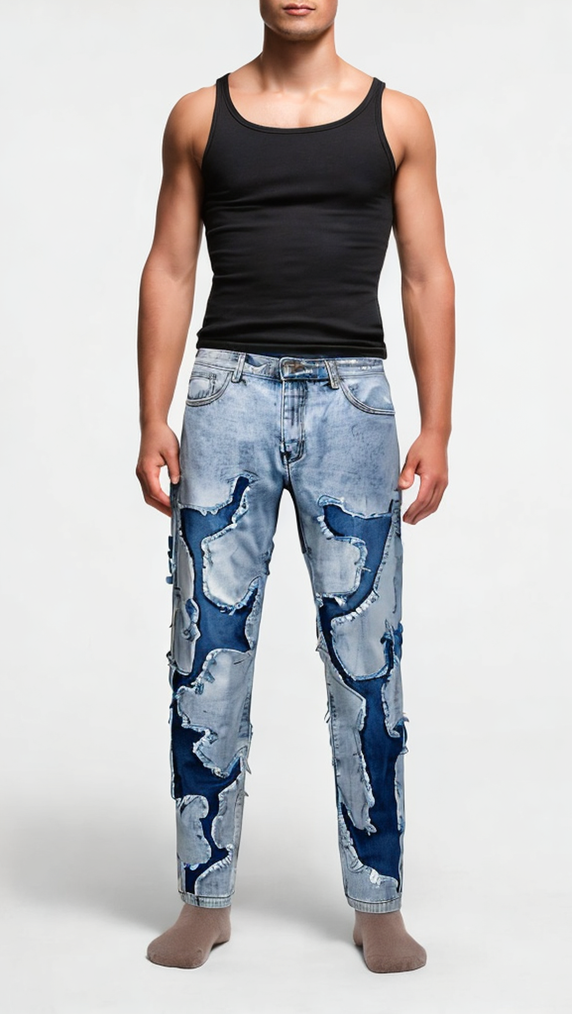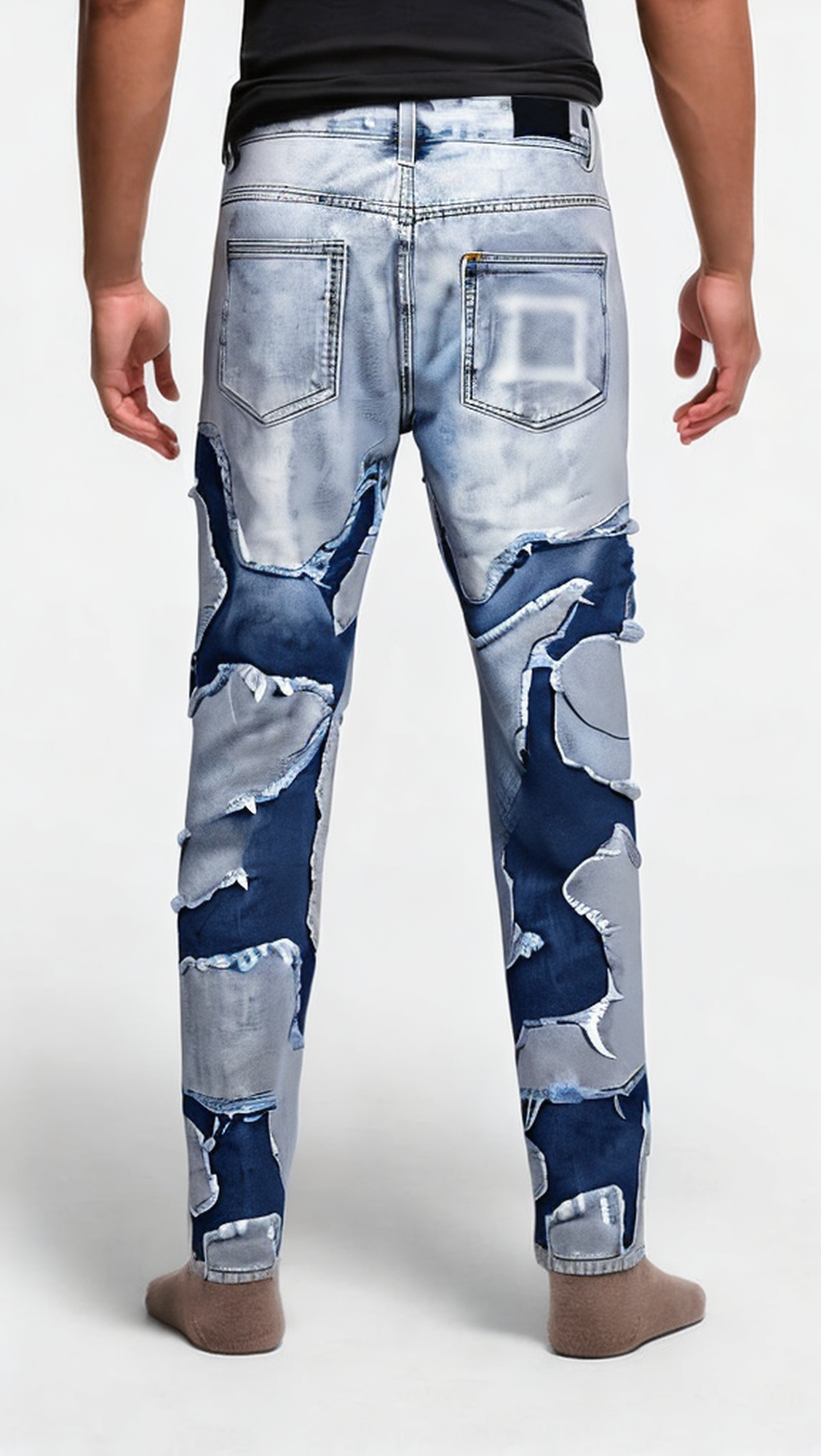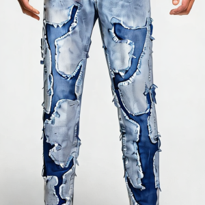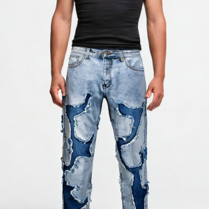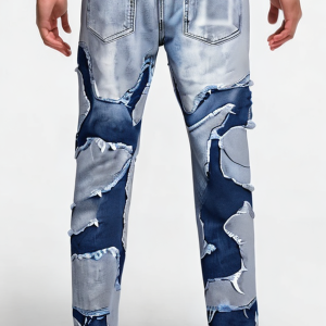 Contrast patch design: The addition of contrast patches adds a sense of design to the traditional ripped style of this pair of jeans, making the overall style more layered. The splicing design of different colors or materials enhances the visual impact and makes this pair of jeans more street-fashionable.