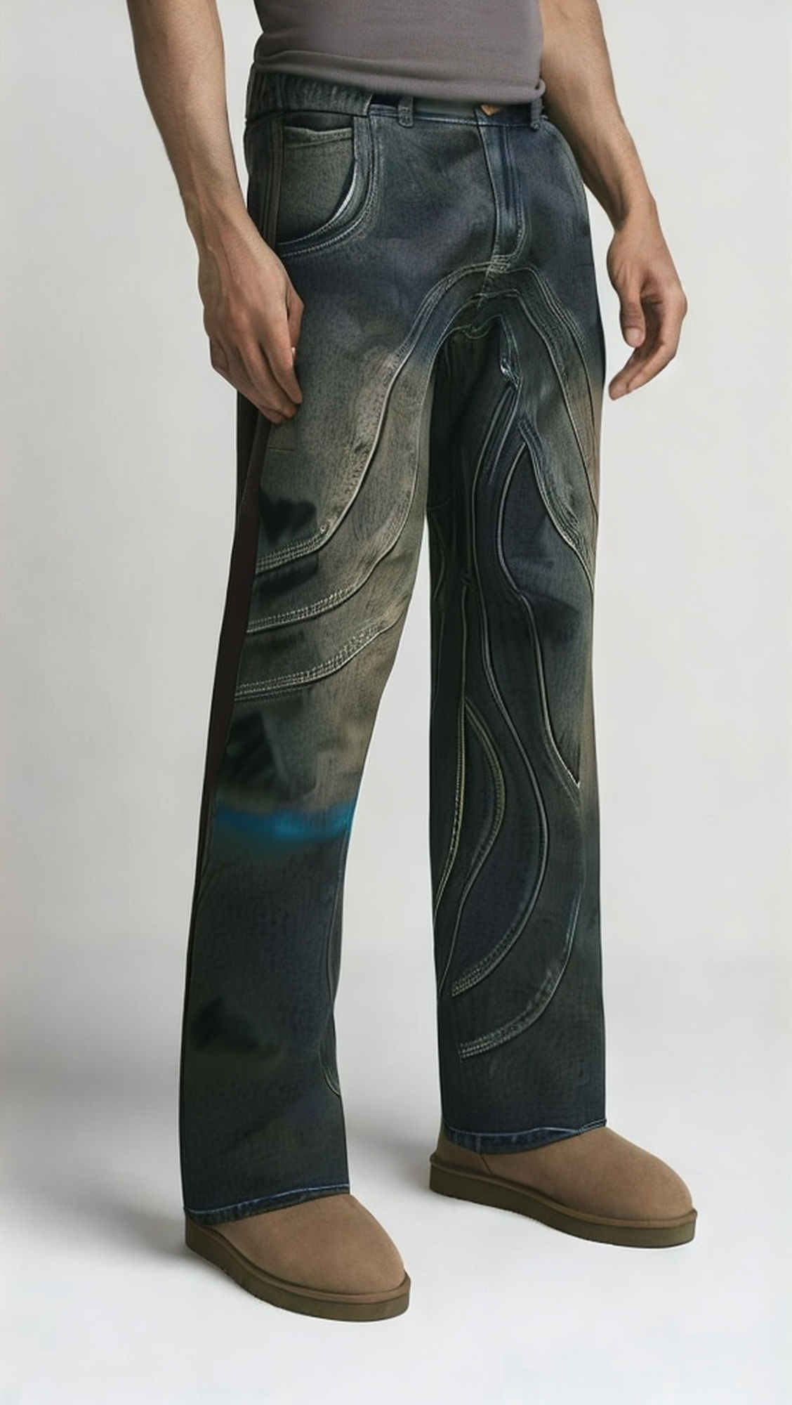 Loose fit: The loose fit allows the jeans to provide more space in the legs and hips, allowing the wearer to feel more free to move. Compared with skinny jeans, loose fit can better highlight the casual style, and is suitable for men of different body shapes, providing a more comfortable wearing experience.
