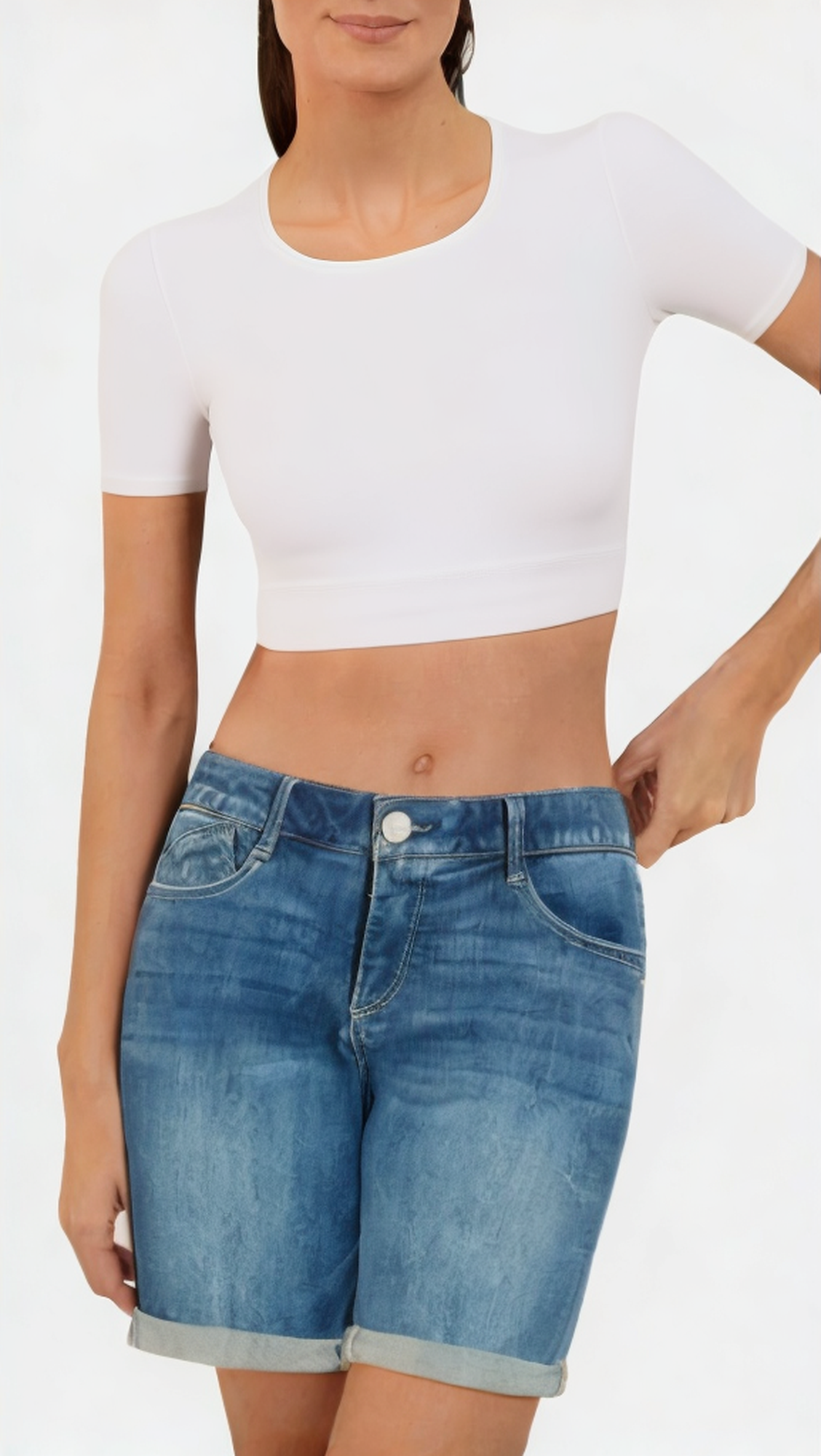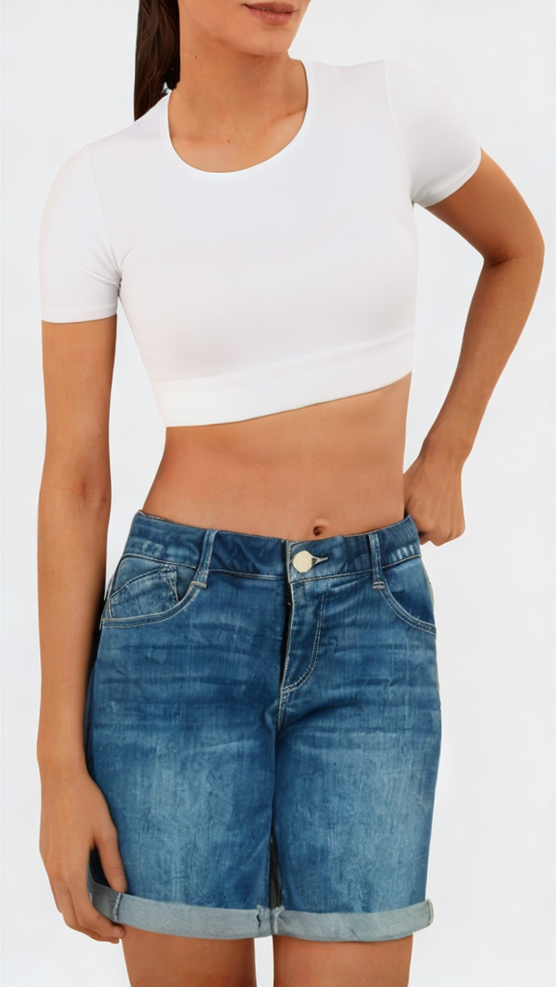This new round-neck sports short yoga T-shirt is designed for modern women, combining fashion and functionality. It uses high-quality fabrics and exquisite design to provide optimal comfort and sports performance. The short design highlights the waistline, making it unique in yoga, fitness and daily wear.
