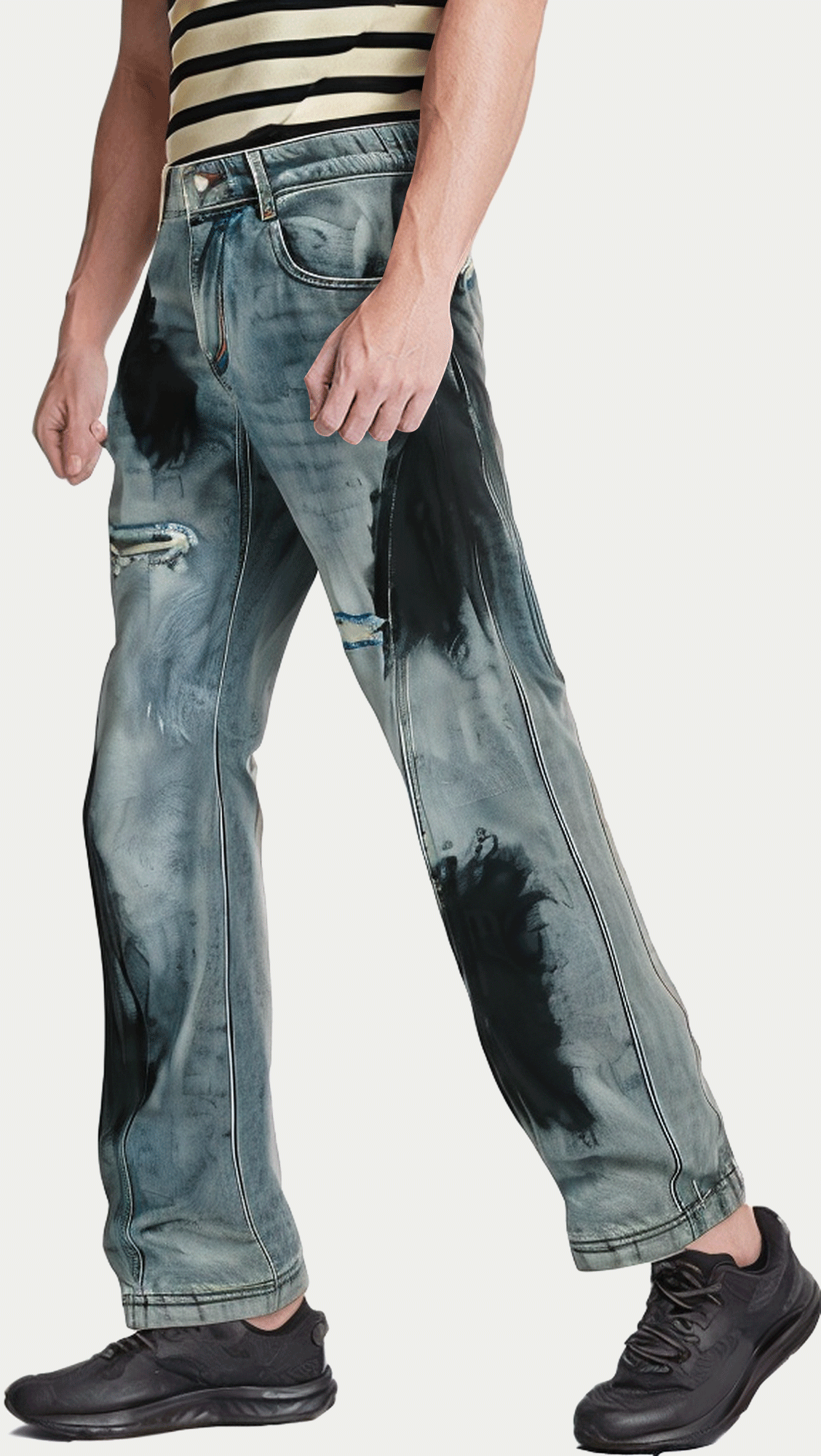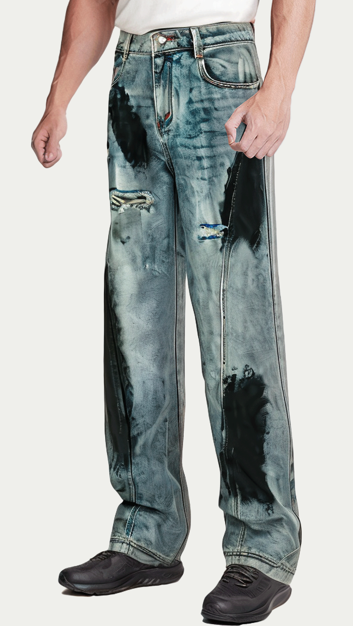 This painted hole streetwear jeans, with its unique design and modern street style, adds a touch of dazzling color to your daily wear. Combining artistic painted patterns and fashionable hole design, it perfectly shows the fusion of personality and fashion, and is an excellent choice for men who pursue unique style.