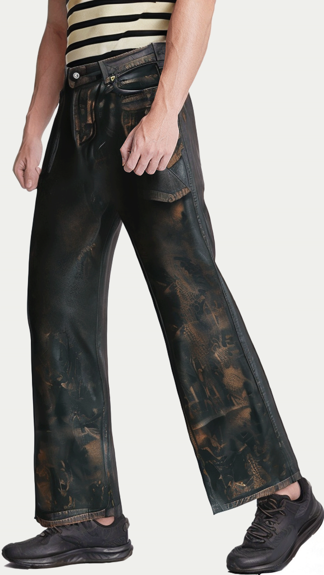 Detailed sewing process: The fine sewing process and design details enhance the durability and overall style of the jeans, showing high-quality production standards.
