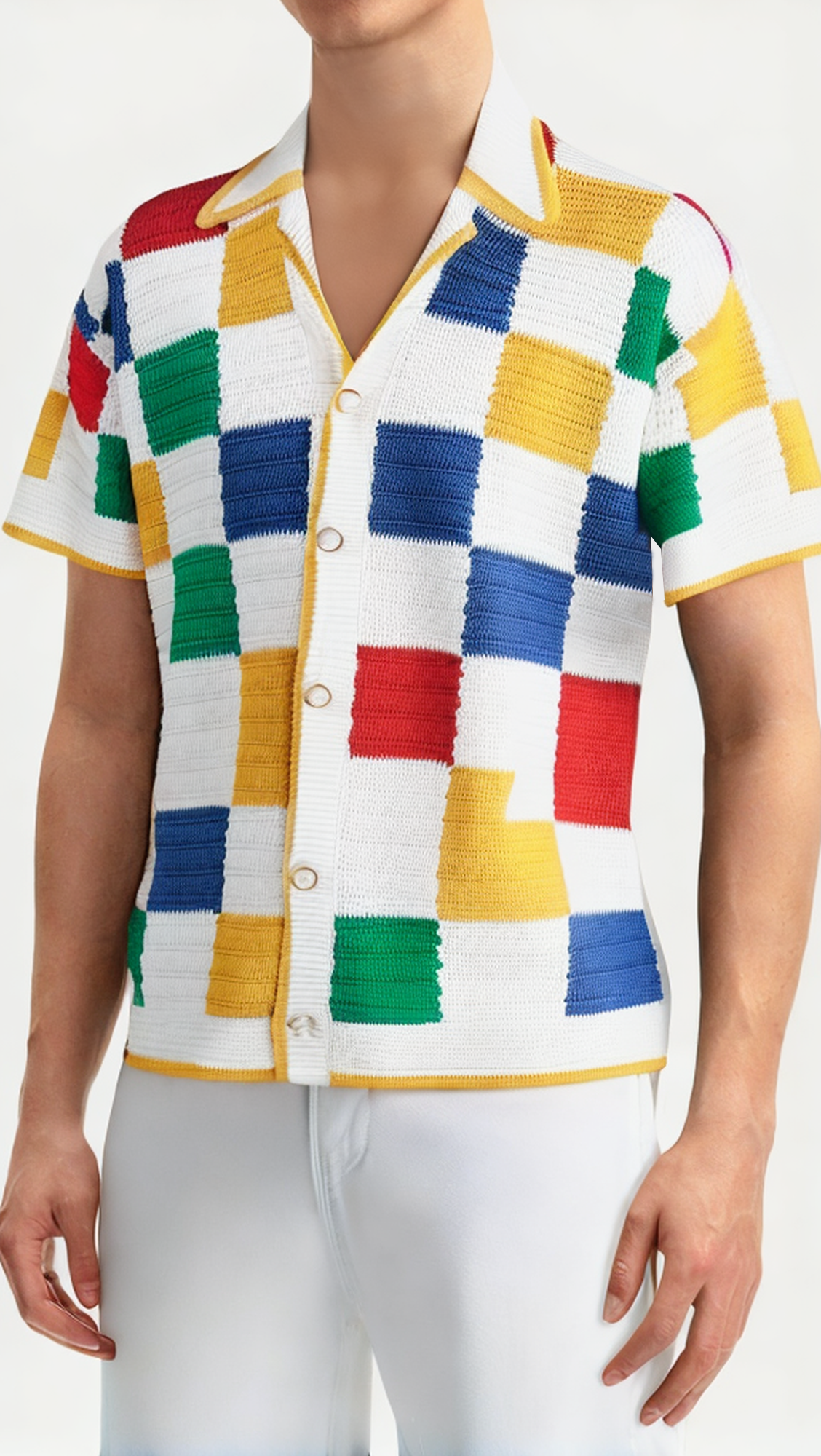 This summer high-quality plaid square short-sleeved cardigan cotton mesh polo shirt combines classic and modern design elements. With delicate embroidery technology and unique crochet knitting, the fashionable pattern of plaid squares is displayed. High-quality cotton mesh fabric ensures comfort and breathability, providing you with the best wearing experience in the hot summer.