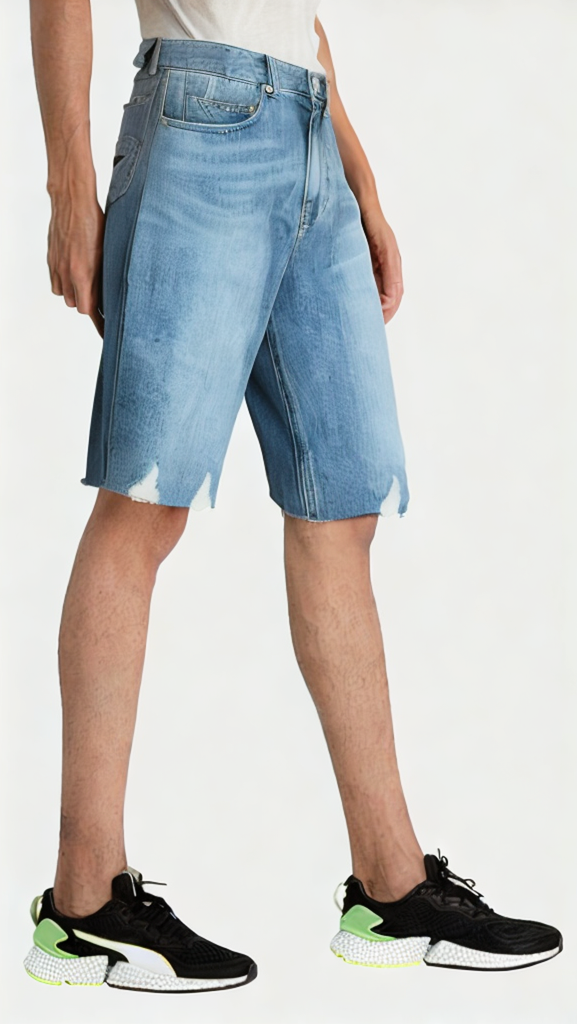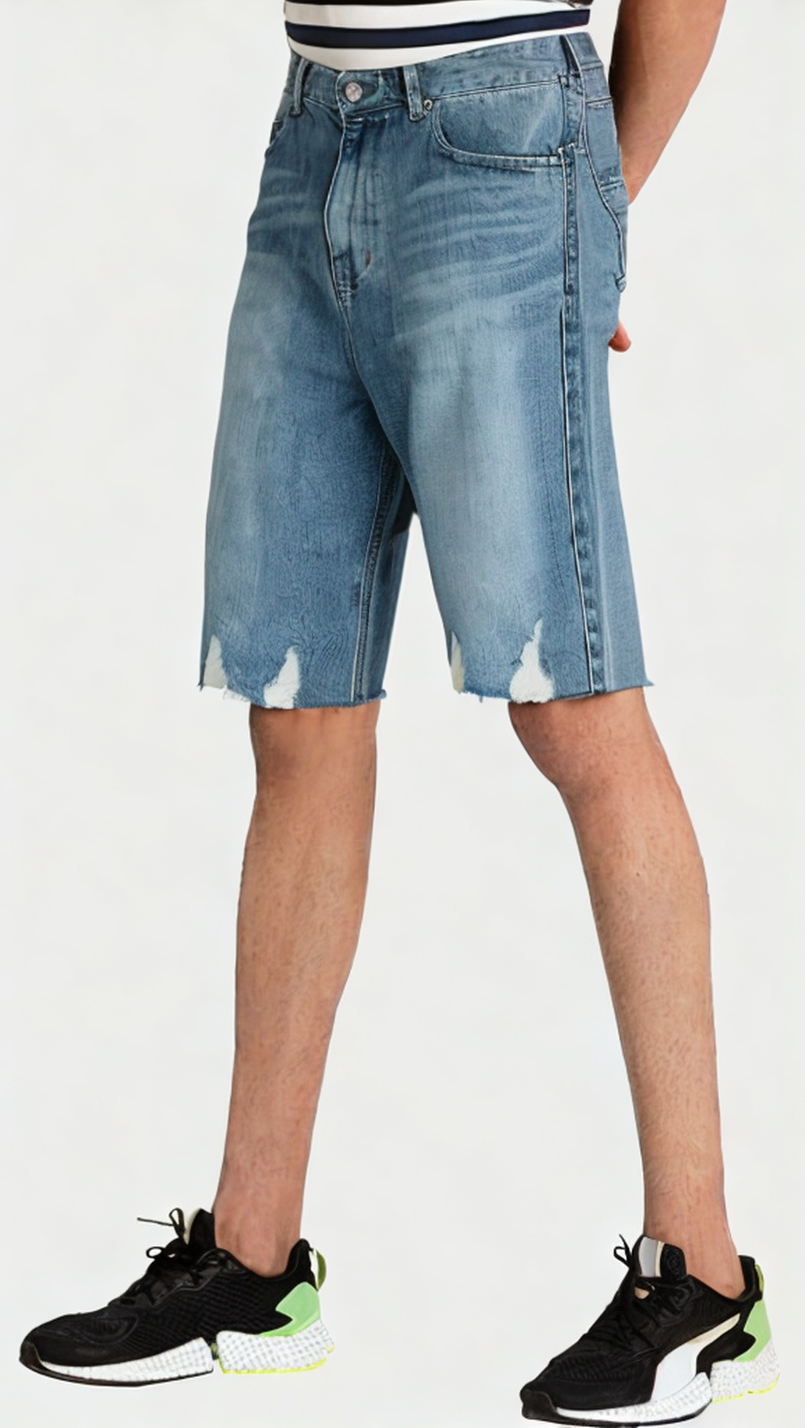 This vintage washed distressed loose short jeans with raw edges is a must-have item in the summer wardrobe with its unique design and fashion sense. The jeans have been finely washed to show a classic vintage style, and the distressed and raw edge design adds an eclectic street feel, making it a perfect choice for casual wear.