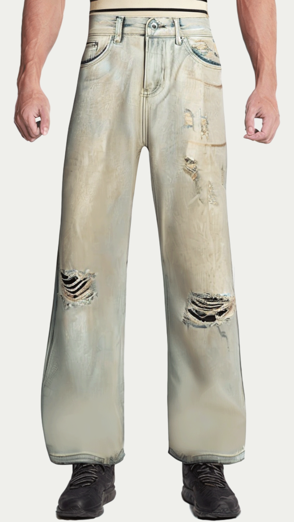 This high-quality wide-leg ripped washed jeans, with its unique design and high-quality fabrics, provides a great choice for street fashion lovers. Combining classic denim fabrics with modern street style, the pants are carefully washed to show a vintage and personalized ripped effect. Whether it is daily leisure or street trend activities, these jeans can add a unique style and comfort to your look.